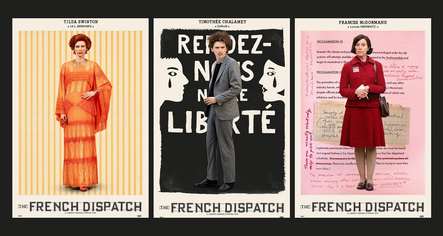 The French Dispatch posters feature the wonderful world of print journalism.
