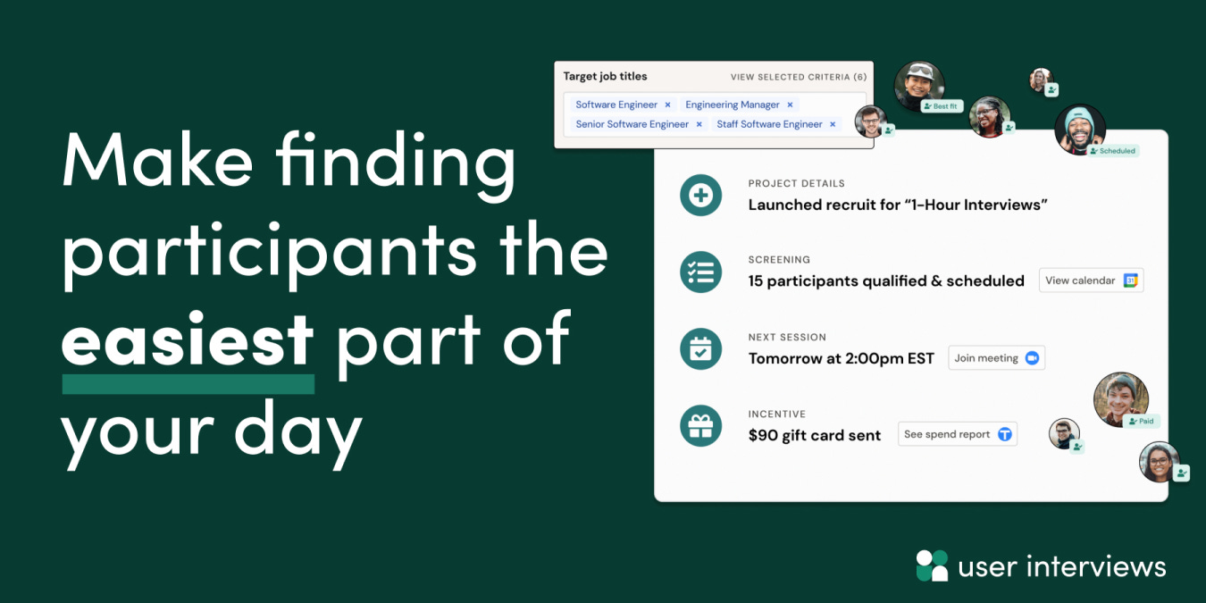 [Sponsored] To optimize your UX research process, you need a quick and affordable way to connect with your ideal audience. User Interviews has 5+ million top-quality participants at the ready. Easily customize your search by profession, products used, and more to find the right people—fast. Sign up now and recruit your first 5 participants on us!