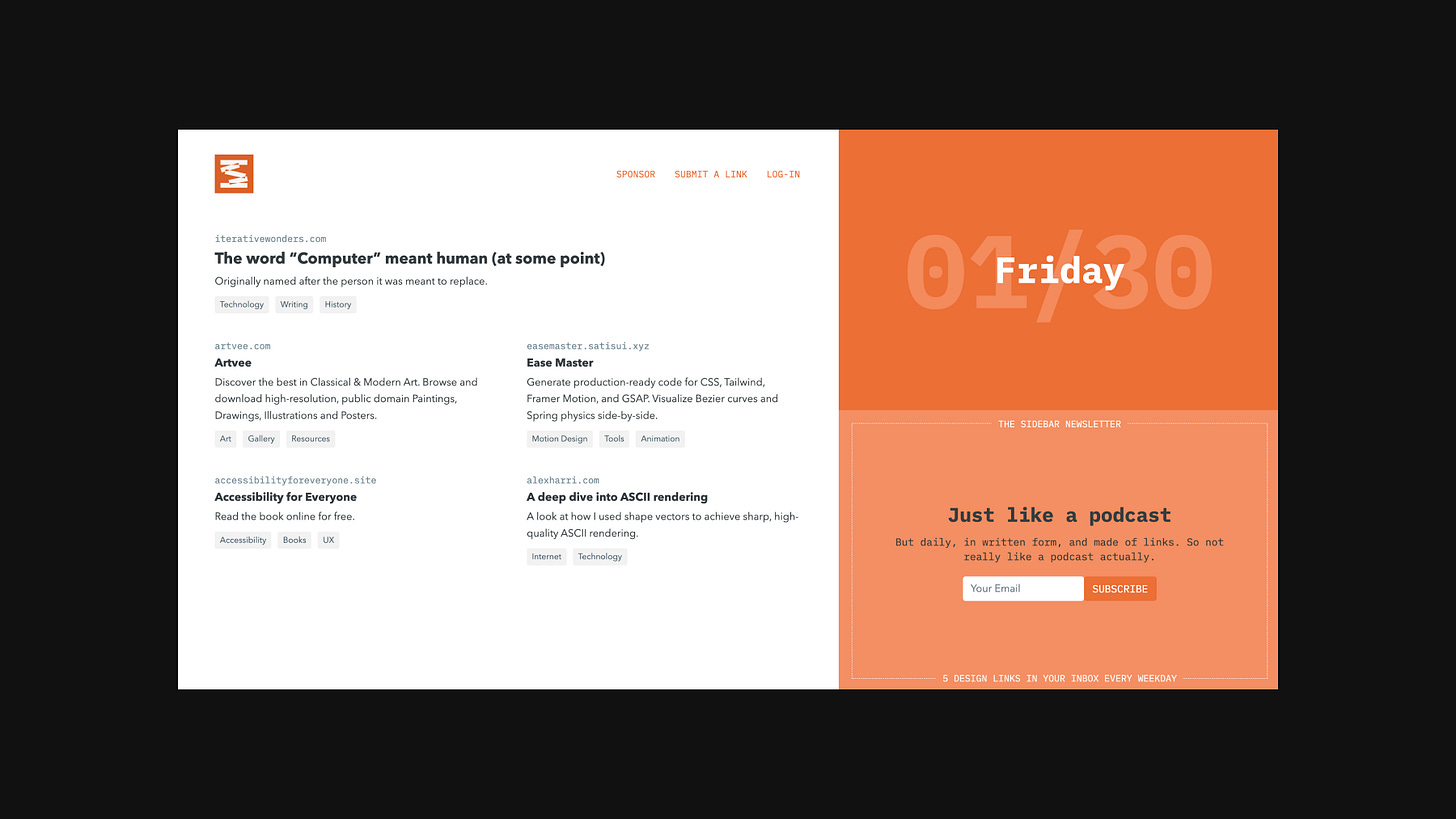 The Sidebar Newsletter: 5 design links a day, nothing else →